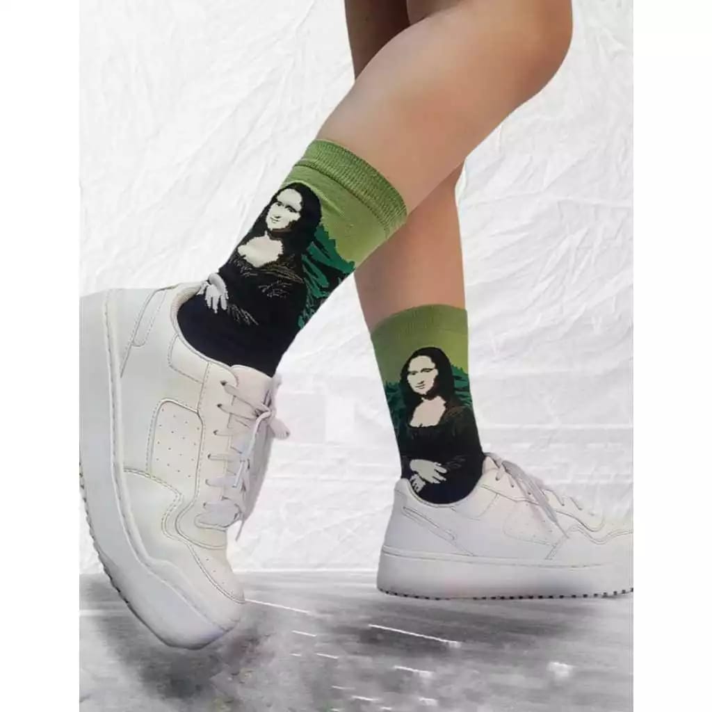 Se você ama arte e quer expressar sua originalidade em cada detalhe, a Mona Style é uma peça que faltava em seu guarda-roupa. Inspirada na obra prima de Leonardo da Vinci, essa meia exclusiva transforma um clássico atemporal em um acessório cheio de atitude, irreverência e sofisticação.